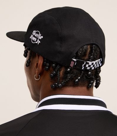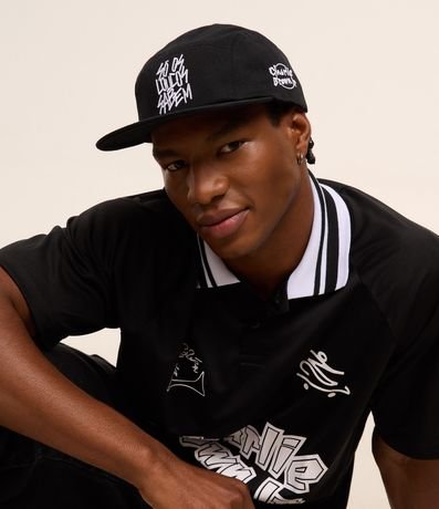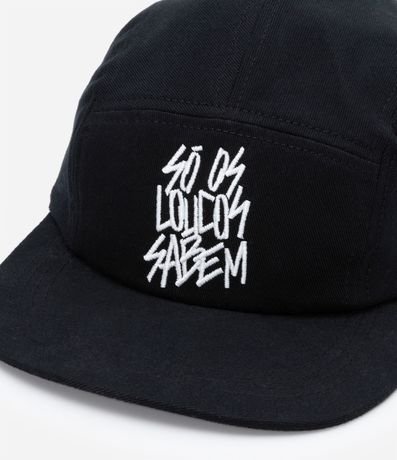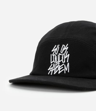 Ref: Boné aba reta masculino, confeccionado em sarja, com regulagem na parte de trás e bordado "Só os loucos sabem", Charlie Brown Jr.