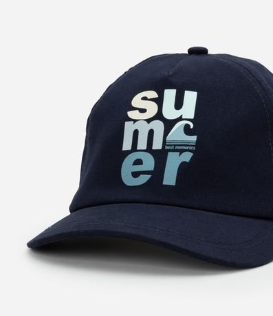 Boné infantil de modelo aba reta, confeccionado em material mais sustentavel e com estampa lettering Summer.