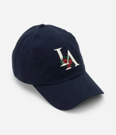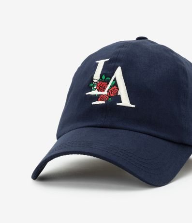 Ref: Boné aba curva em sarja com estampa bordado LA rosas regulagem.