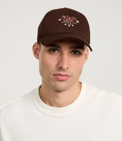 Ref: Boné masculino confeccionado em sarja de algodão certificado BCI e boas práticas ambientais. Modelo com aba curva, ajuste traseiro e bordado NYC, garantindo estilo urbano com responsabilidade.