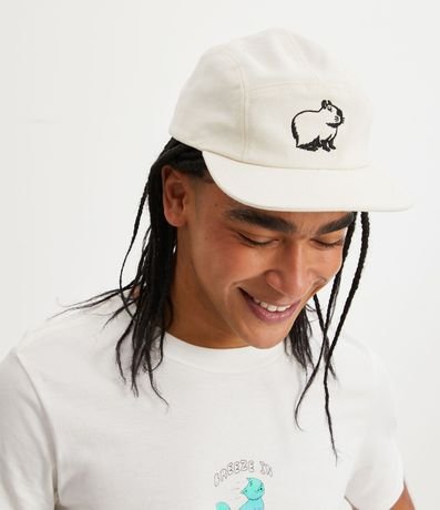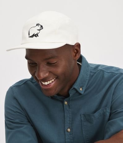 Ref: Boné masculino, em sarja, aba reta com bordado frontal de capivara.