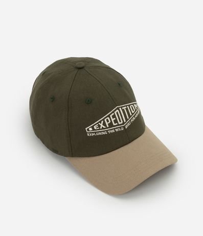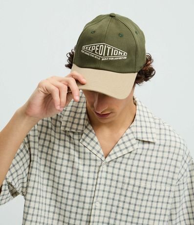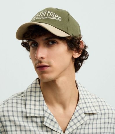 Boné masculino confeccionado em sarja de algodão mais sustentável. Peça com aba curva, estampa lettering bordada com a frase Expedition.