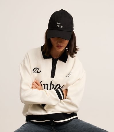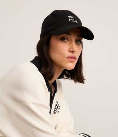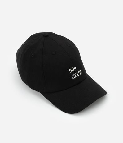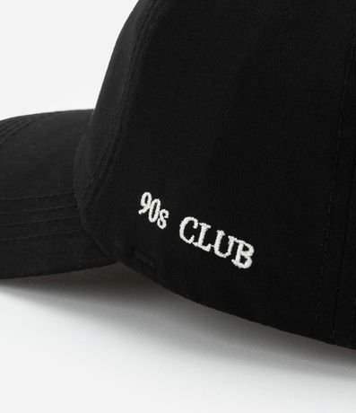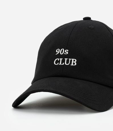 Ref: Boné com aba curva e bordado frontal e lateral em lettering "90´s Club". Possui ajuste traseiro com fivela.