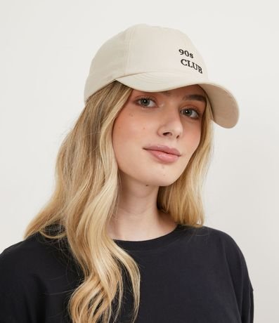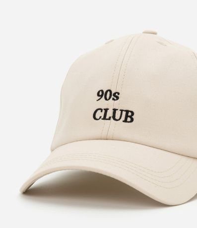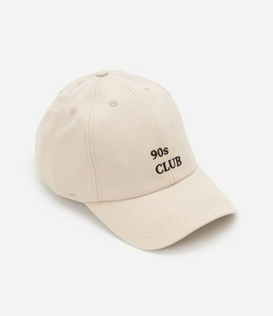 Ref: Boné com aba curva e bordado frontal e lateral em lettering "90´s Club". Possui ajuste traseiro com fivela.