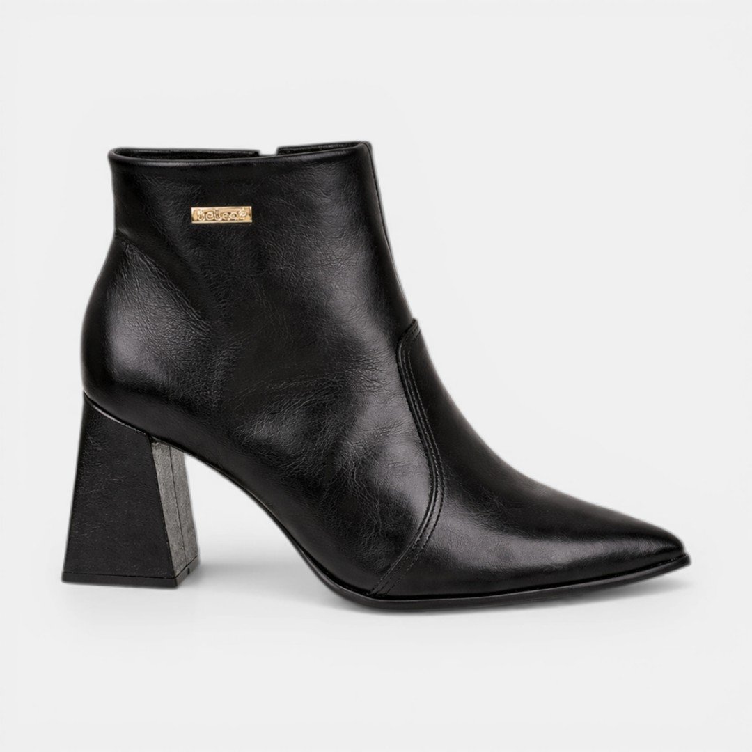 Bota Bebecê Cano Curto Salto Bloco Em Couro Preto