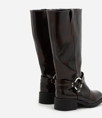 Ref: Bota biker boot feminina, confeccionada em PU, com fechamento de zíper, detalhe em argola lateral e salto baixo de 3,5cm.