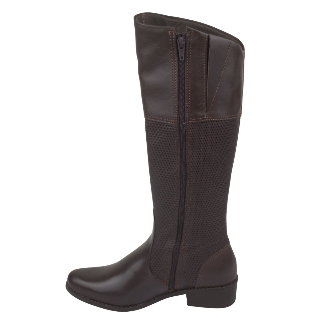 - Zíper lateral que facilita o calce e ajuste perfeito