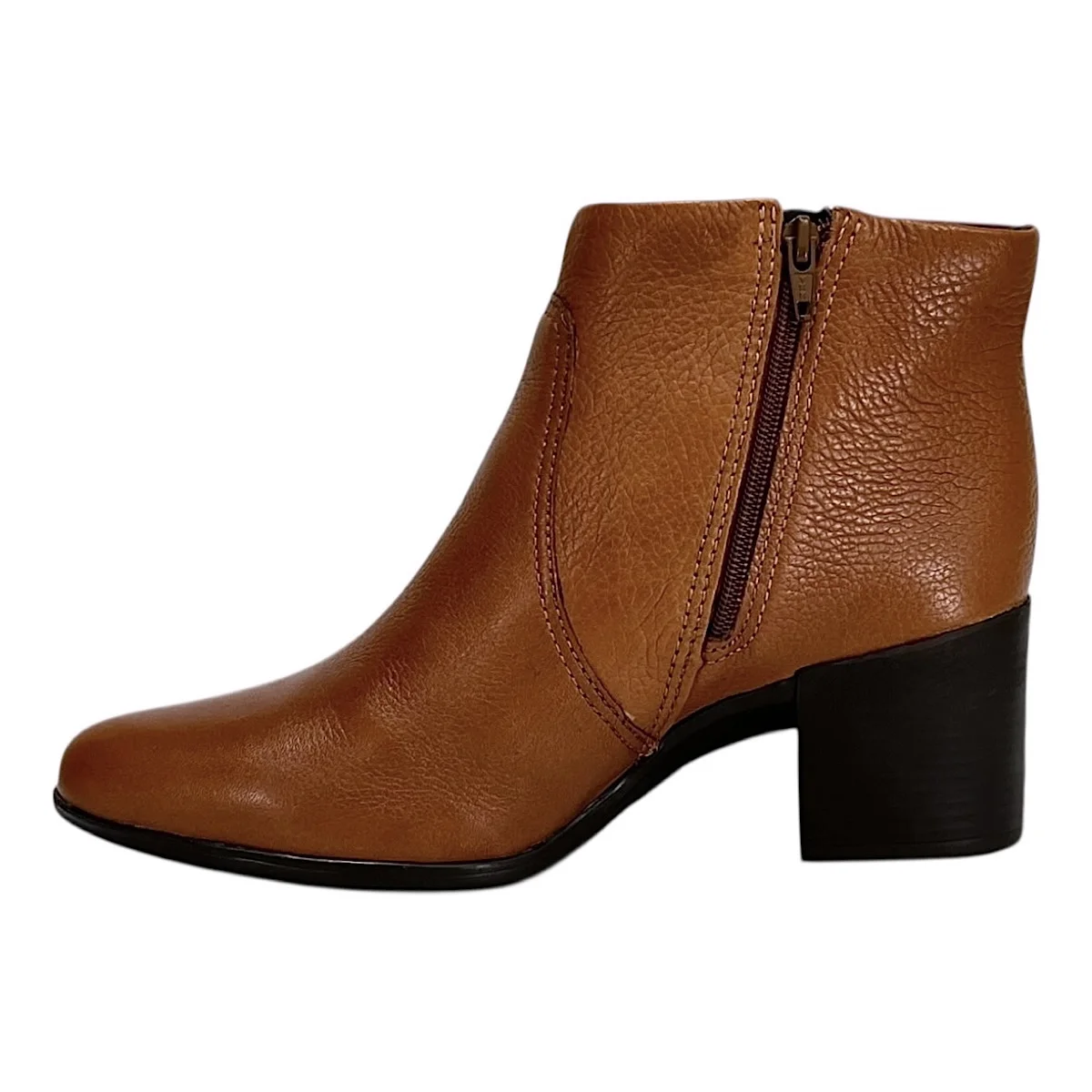 Com um visual elegante e feminino, a bota Bottero cano baixo em couro burnish caramelo é perfeita para quem valoriza estilo, conforto e qualidade. Seu design clássico recebe um toque contemporâneo através do salto bloco alto de 6 centímetros, que garante estabilidade e sofisticação. O bico arredondado proporciona conforto ao caminhar, enquanto o fecho deslizante na lateral interna facilita o calce no dia a dia. O forro em tecido mantém o bem-estar durante o uso e o solado em borracha assegura aderência e durabilidade, tornando essa bota uma excelente opção para todas as estações.
