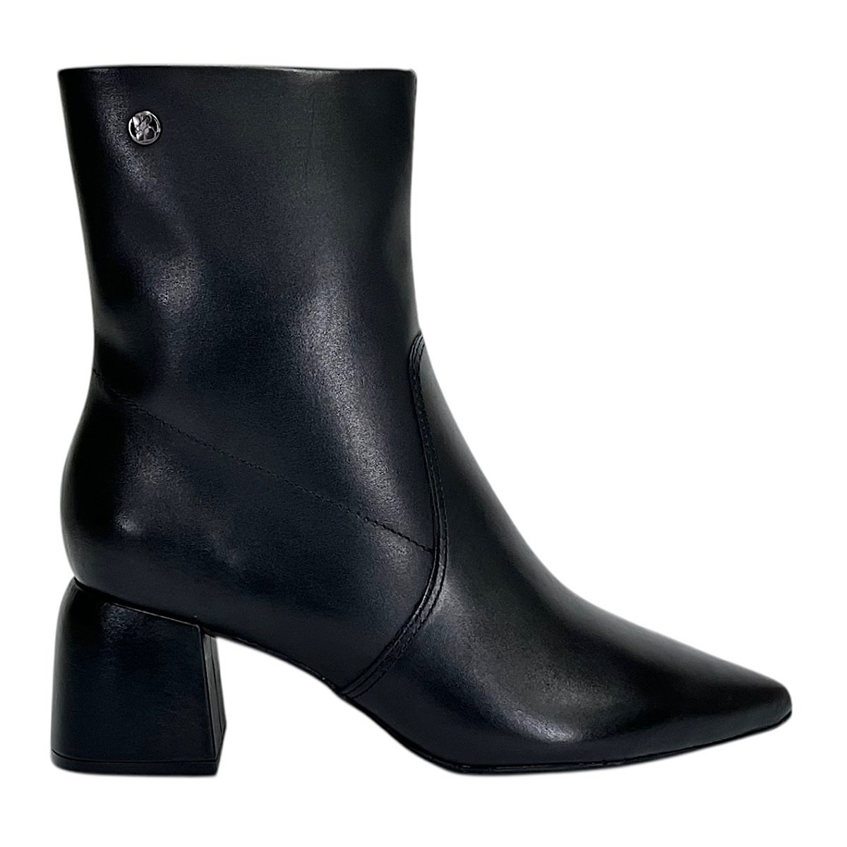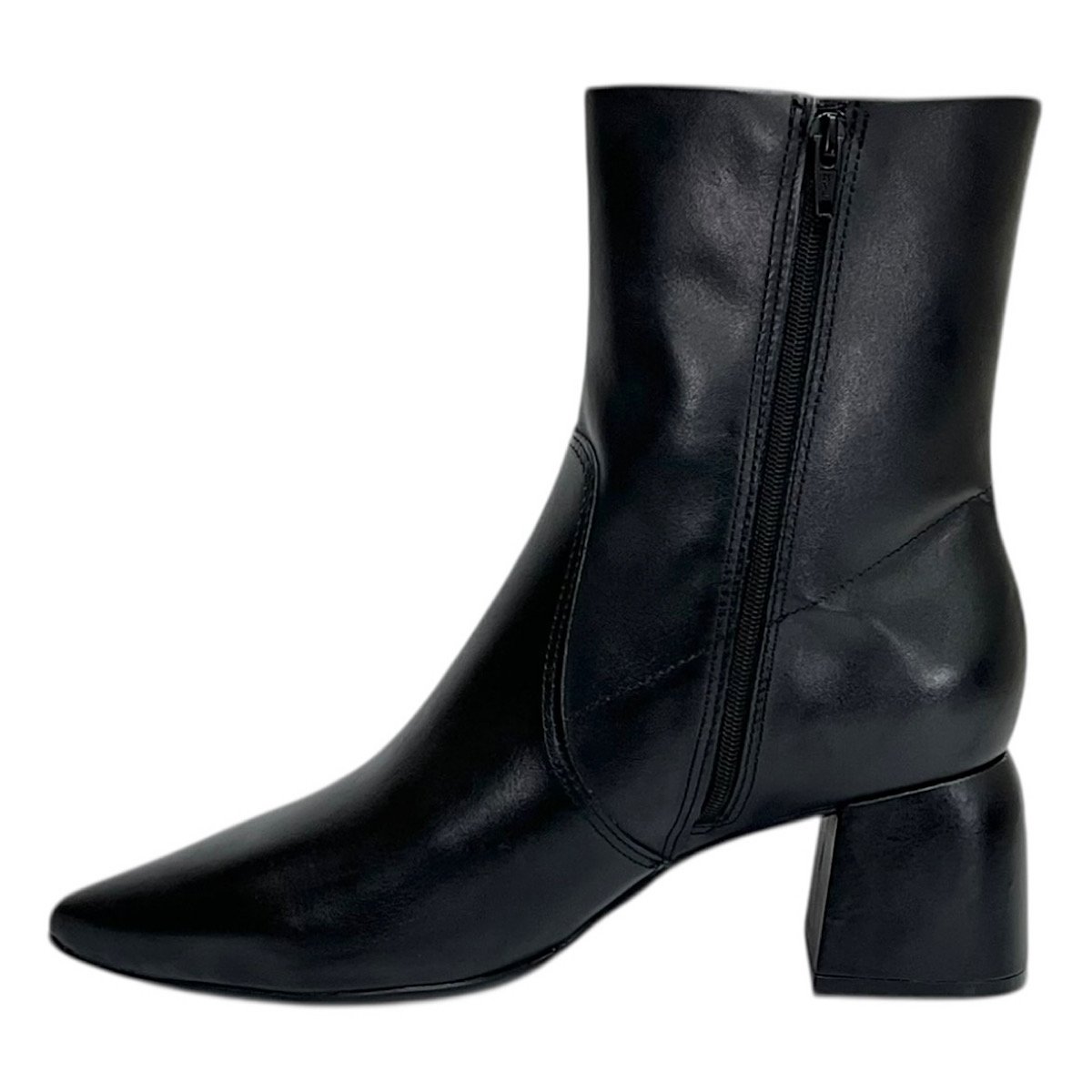 O bico fino confere um visual refinado e moderno, enquanto o salto bloco com seis centímetros de altura garante estabilidade e conforto ao caminhar, ideal para a rotina urbana ou ocasiões que exigem elegância sem abrir mão do bem-estar. O fechamento por fecho deslizante lateral facilita o calce e assegura praticidade no dia a dia.