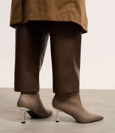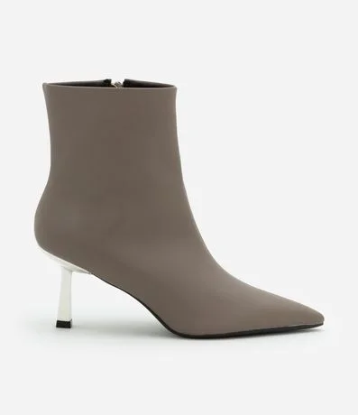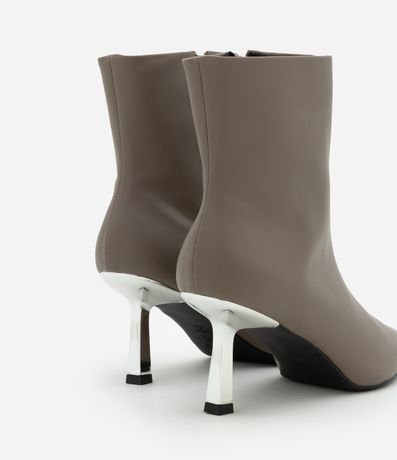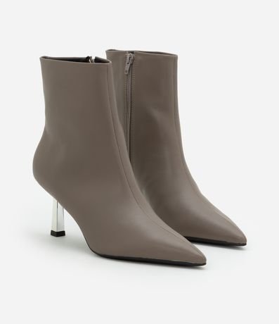 Bota feminina confeccionada em material sintético, com cano baixo, bico fino, fechamento lateral por zíper. Peça com salto alto fino cromando que permite um charme contrastante para o produto.