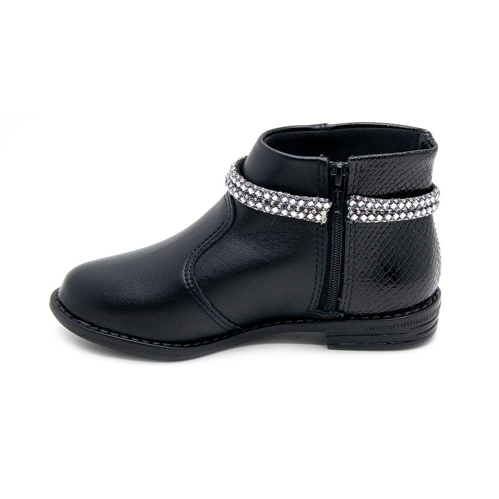 A Bota Cano Curto Infantil Menina Molekinha 2167.135 Preto é lindo! Toda confeccionada em material sintético, palmilha super confortável em tecido, solado em pvc com frisos antiderrapantes, para maior segurança, fechamento por zíper na lateral, para facilitar o calce e detalhes em pedraria, o que deixa o modelo ainda mais bonito.