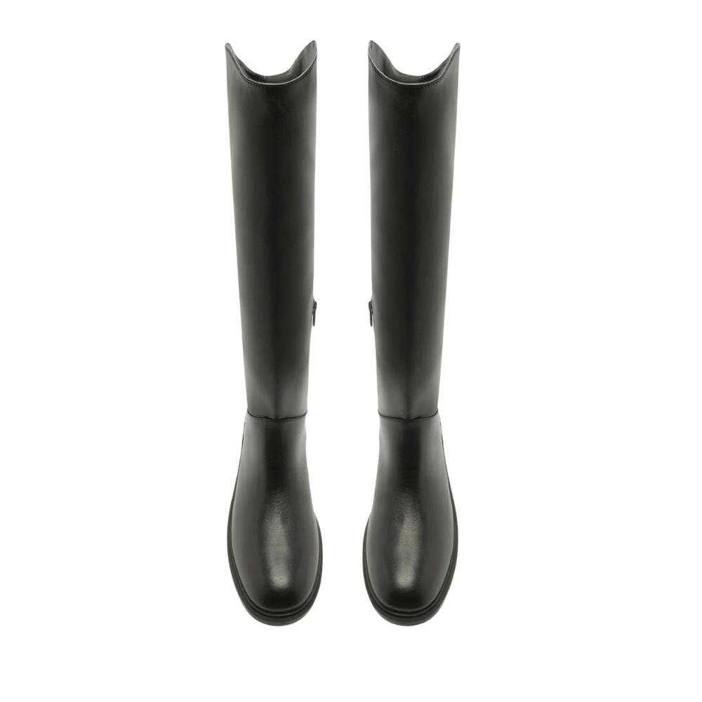 Ref: Bota preta de couro. O sapato tem cano longo, salto baixo bloco em fachete e formato arredondado na ponta. Possui cabedal ajustado ao pé e fecho em zíper na lateral interna. Material: Outros Cor: Preto Sobre nossa loja: Somos especializados em oferecer produtos com garantia de autenticidade e qualidade comprovada.. Com anos de experiência no mercado, priorizamos o atendimento personalizado e a satisfação do cliente.. Contamos com envio rápido e seguro, além de diversas opções de pagamento facilitado.. Compre com confiança e tenha a certeza de receber o melhor!