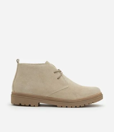 Ref: Bota masculina confeccionada em camurça, com cano baixo, cadarço frontal, sola média, bico redondo.