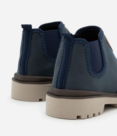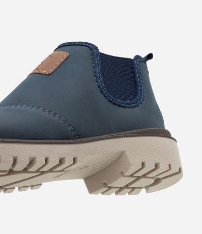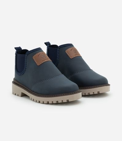 Ref: Bota infantil modelo chelsea, com cano curto, elástico lateral, bico redondo e sola tratorada.