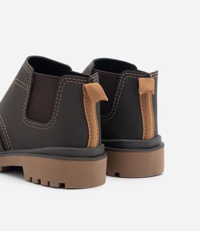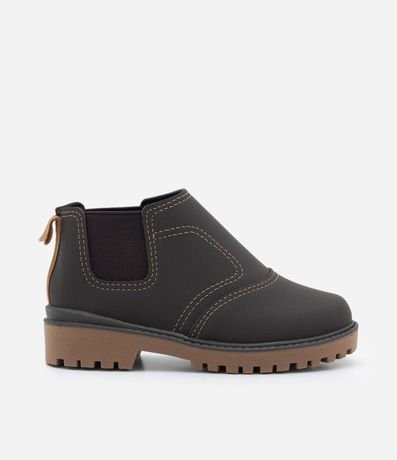 Ref: Bota infantil chelsea com cano baixo, elástico nas laterais, puxador no calcanhar e sola tratoradinha.