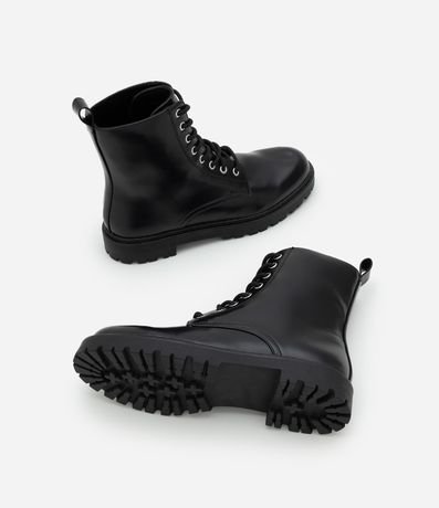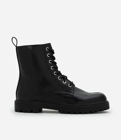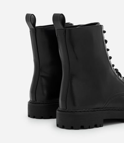 Ref: Bota feminina em PU, estilo coturno, com cano médio estruturado, fechamento por cadarço e solado tratorado robusto.