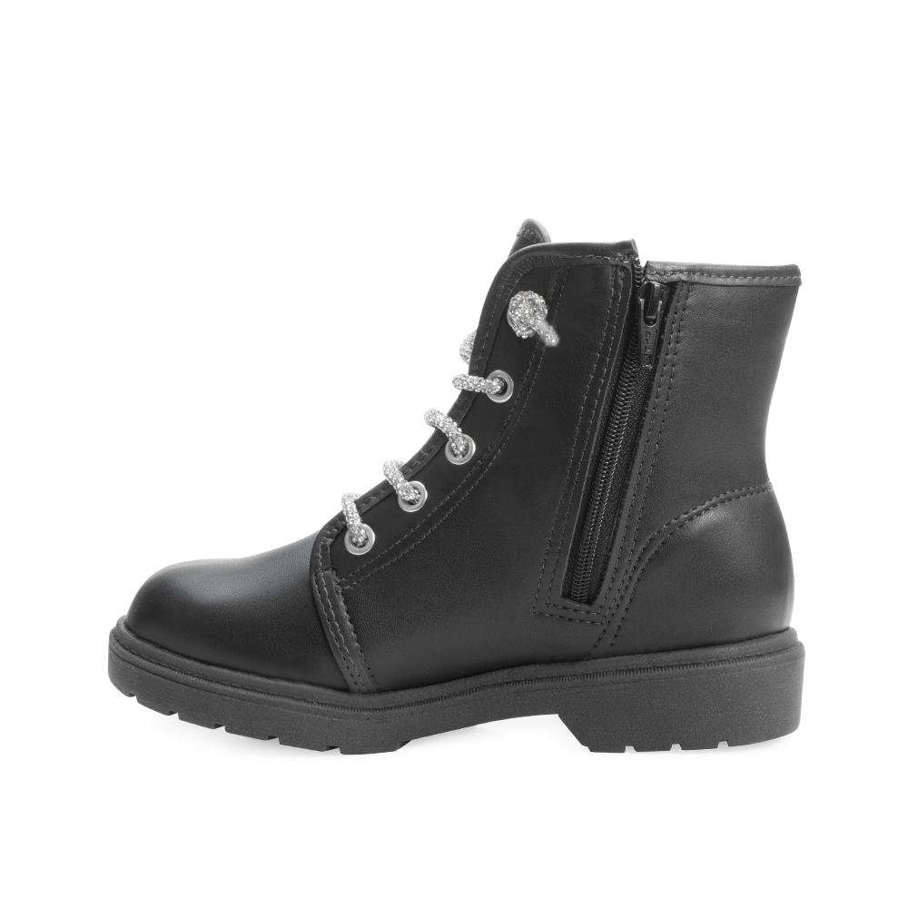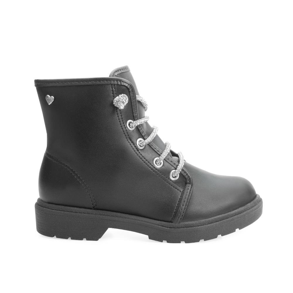 Nome: Bota Coturno Molekinha MK24-21641. Gênero: Menina. Indicado Para: Dia a dia. Estilo da Peça: Casual - Moda. Material Externo: Alternativo. Material Interno: Têxtil macio. Detalhe: Passantes metalizados com cadarço de strass, pin da marca na lateral externa. Fechamento: Cadarço e zíper lateral interna. Palmilha: Forrada e macia. Altura do Cano: 11 cm. Circunferência: 26 cm. Tipo de Solado: Levemente tratorado. Solado: Borracha antiderrapante. Peso do Produto: 695 g (o peso varia de acordo com a numeração). Garantia do Fabricante: Contra defeito de fabricação. Origem: Nacional. Código Produto: 04070267. Marca: Molekinha.