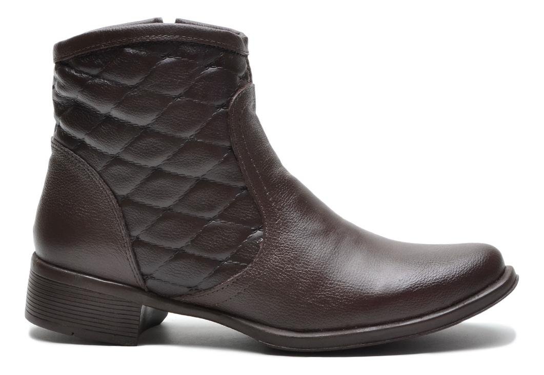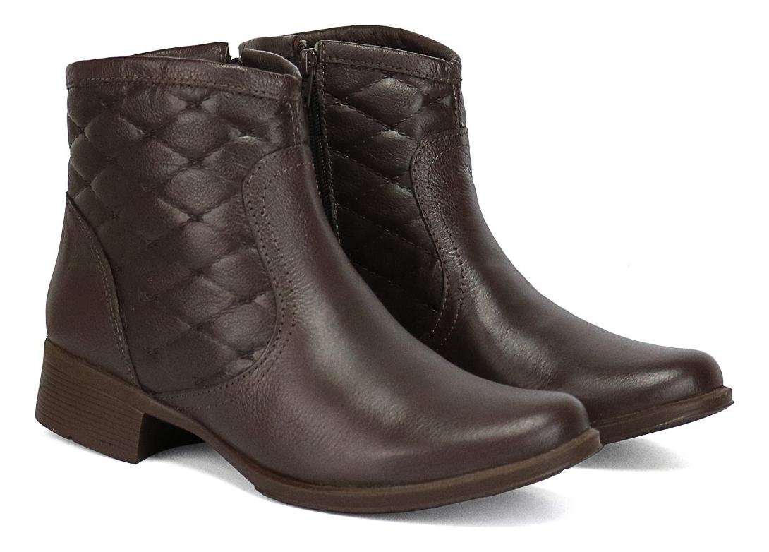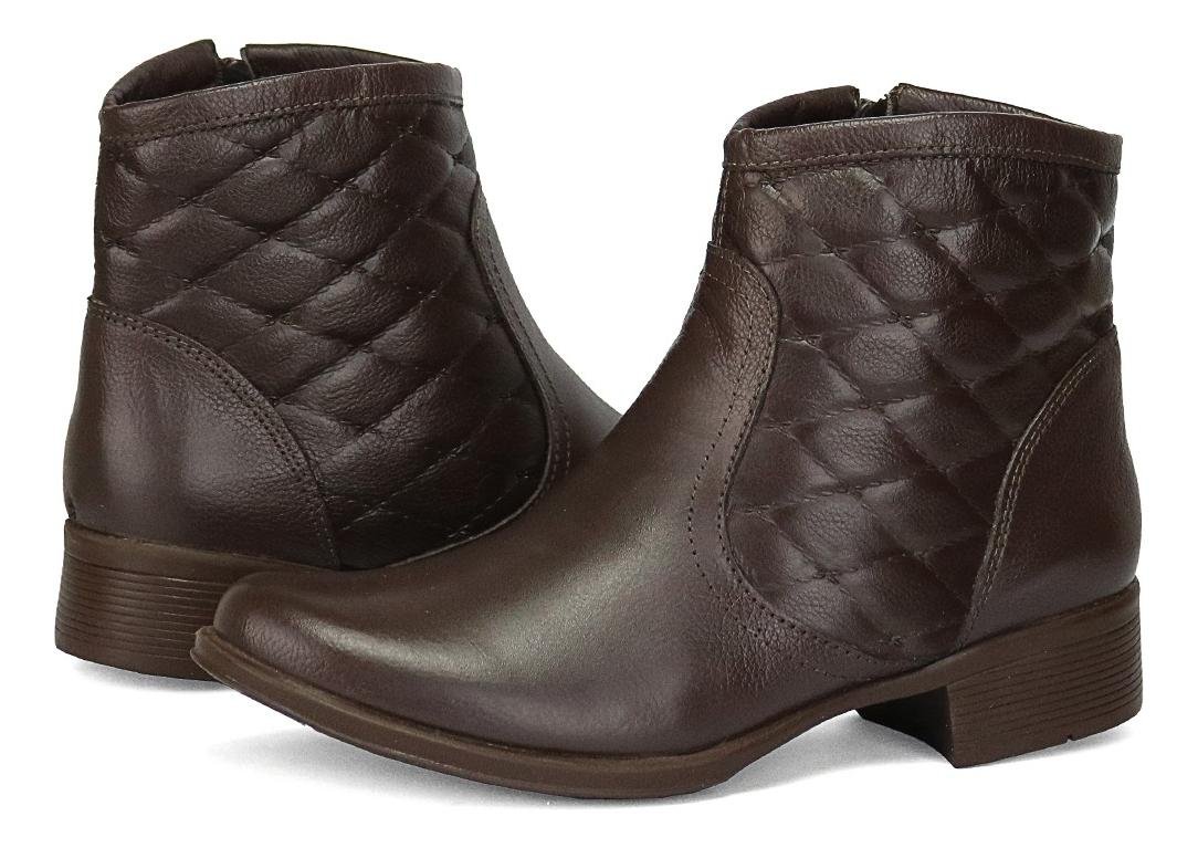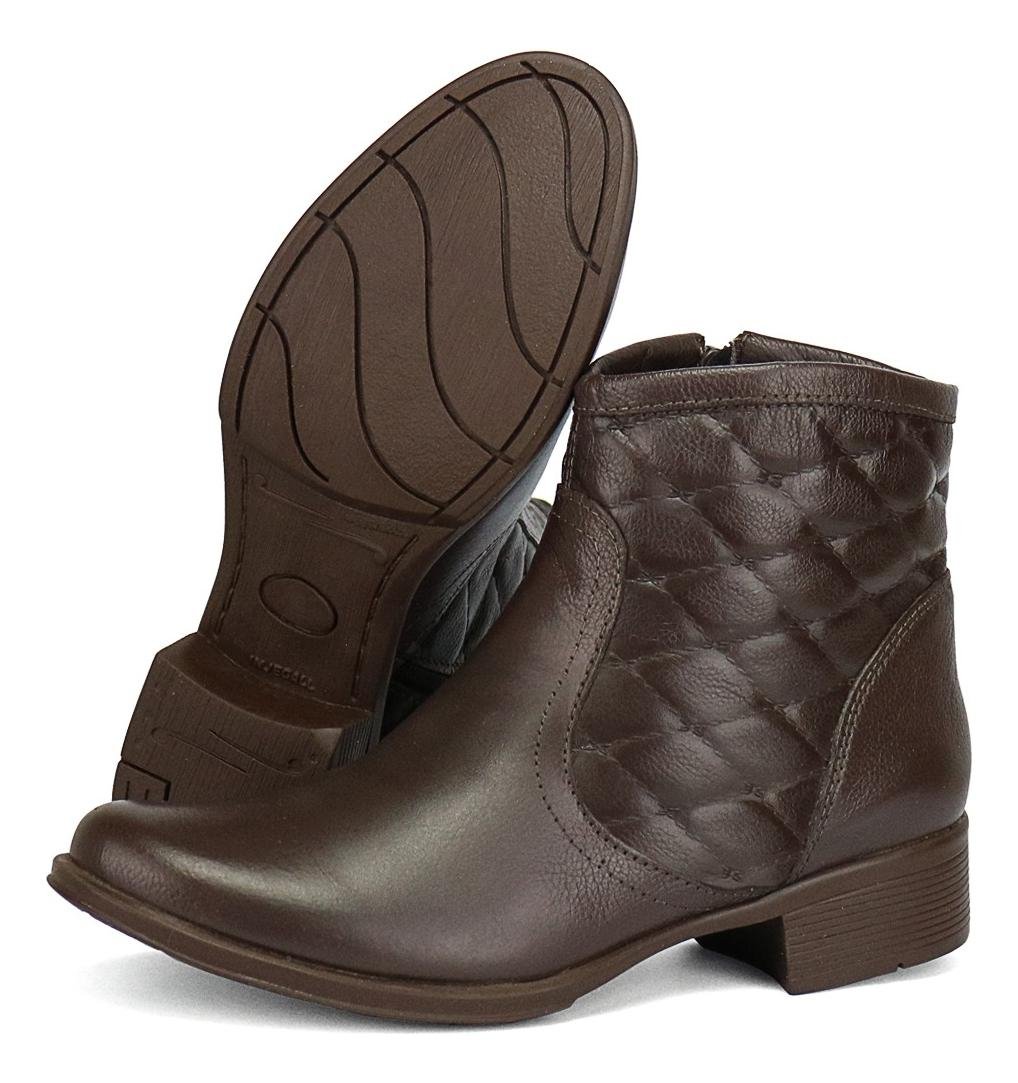 A Bota Feminina Cano Curto em Couro com Detalhe Matelasse combina estilo e praticidade, oferecendo elegancia e conforto em todas as ocasioes. Seu design moderno com acabamento matelassado valoriza o visual, enquanto os materiais de qualidade garantem durabilidade. Detalhes do Produto: Material do cabedal: Couro de alta qualidade Detalhe: Cano curto com acabamento matelasse Fechamento: Ziper lateral interno para facilitar o calce Forro: Cacharrel absorvente, proporcionando maciez e conforto Solado: Borracha antiderrapante, oferecendo seguranca ao caminhar