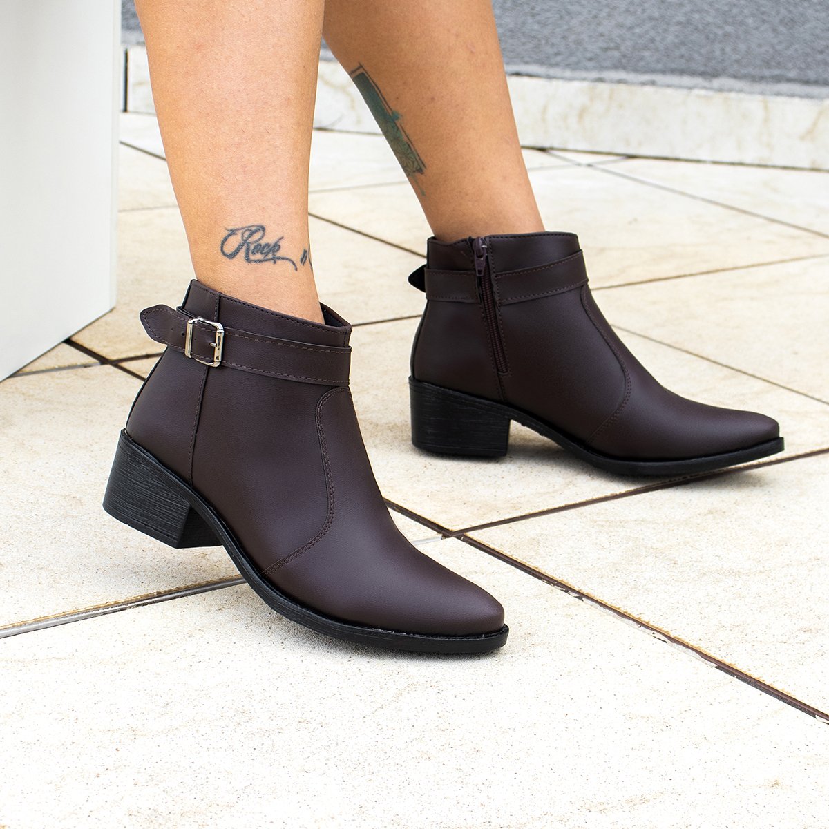 Bota Feminina Cano Curto Bredeni Fivela Com Ziper