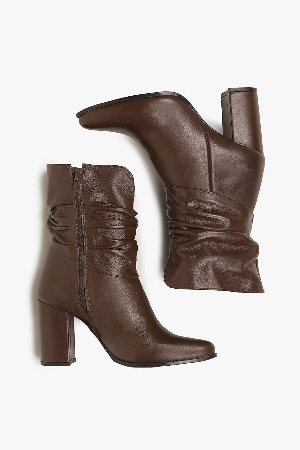 A Bota Feminina Cano Médio Mundial Astridi com acabamento liso e leve brilho, trazendo um visual elegante e atemporal. Modelo de cano médio com efeito franzido na parte superior, que adiciona charme e sofisticação ao design. Possui salto alto bloco, proporcionando mais estabilidade e conforto ao caminhar. Bico levemente fino, ideal para compor produções que vão do casual ao mais sofisticado com facilidade.