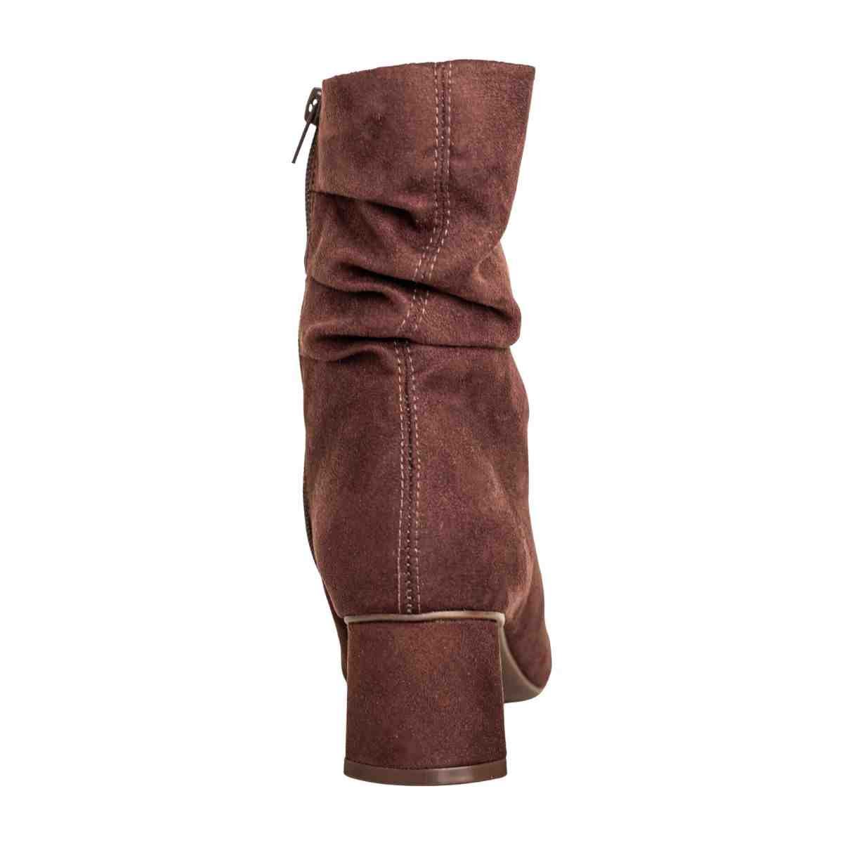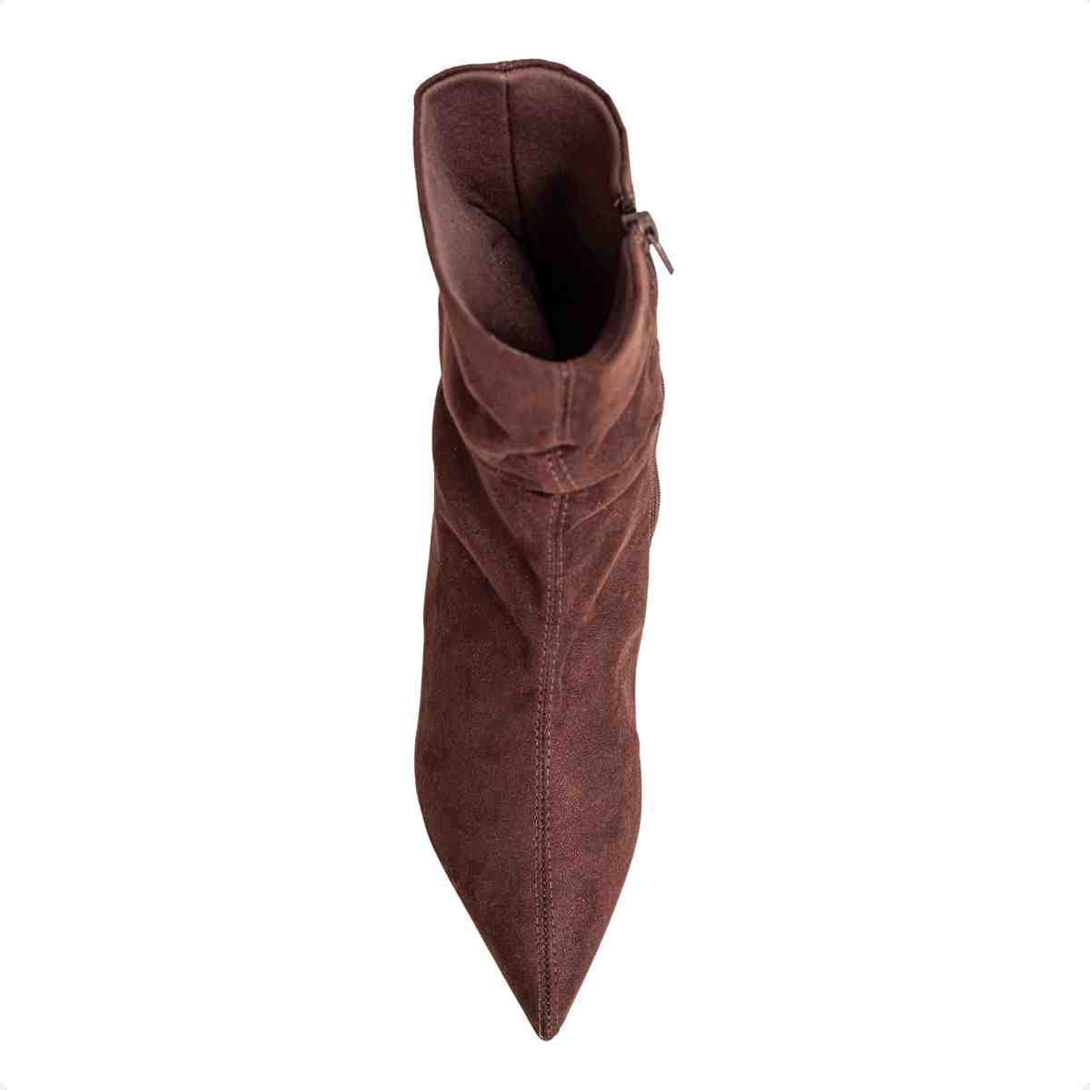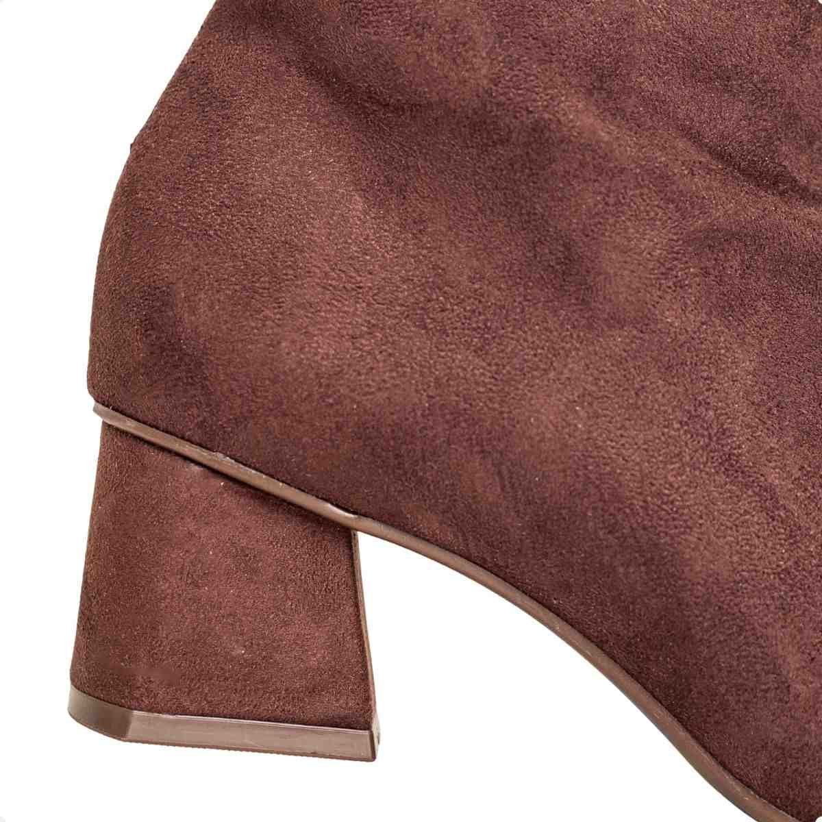 Bota feminina em camurça cacau com salto médio para um visual moderno