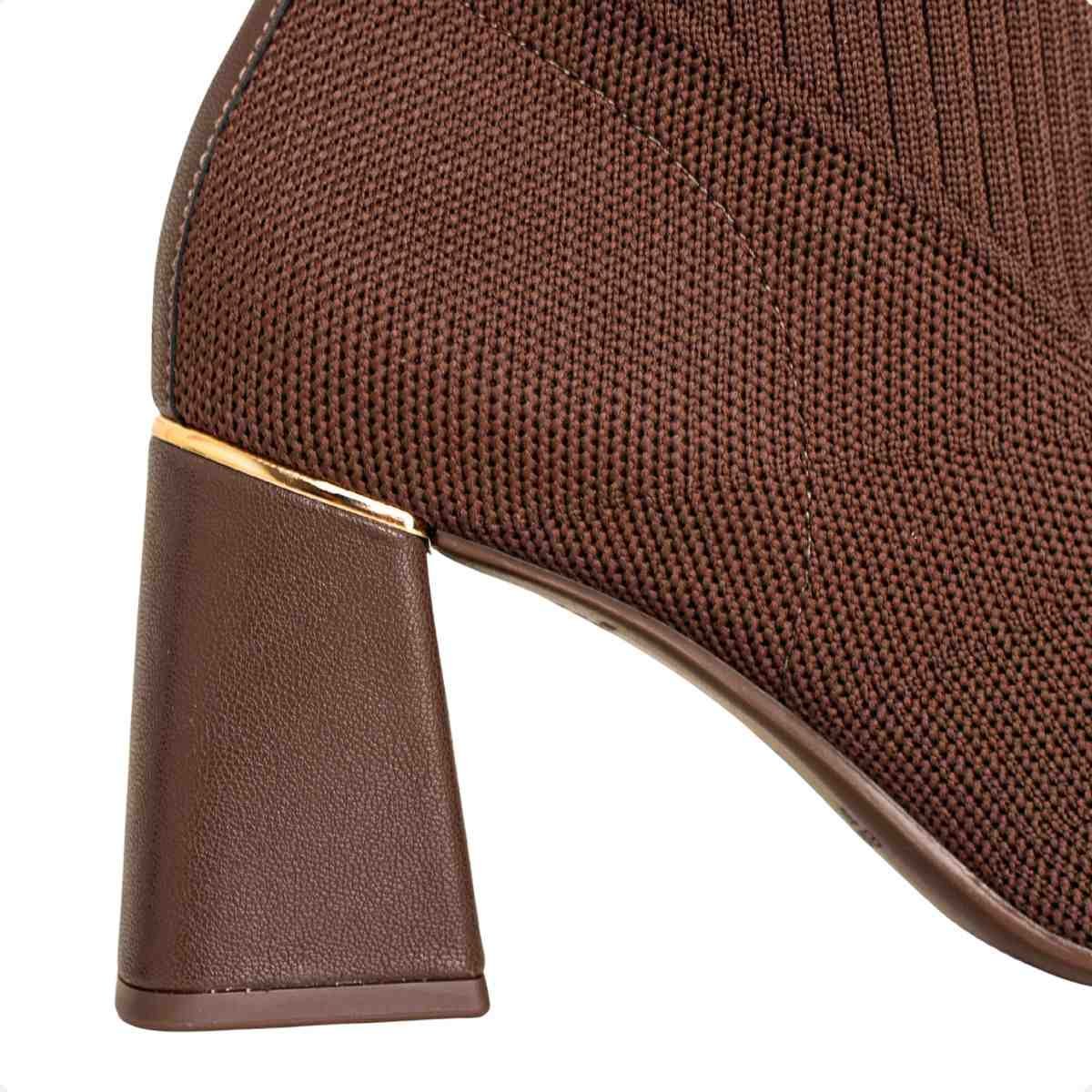 O design é moderno e sofisticado, com salto bloco revestido em napa soho, criando um acabamento uniforme e elegante. A cor expresso traz sobriedade e versatilidade, facilitando combinações com tons neutros e terrosos.