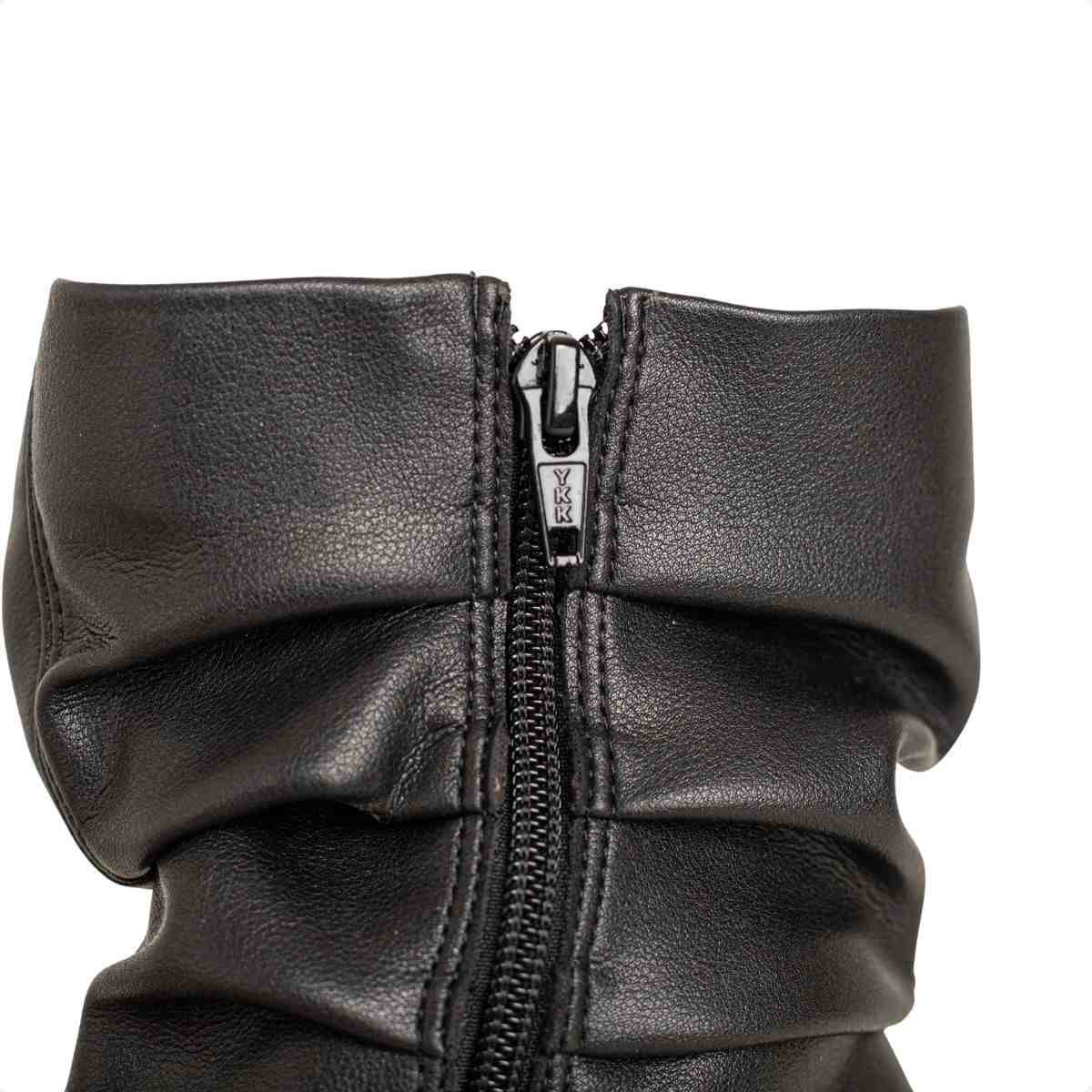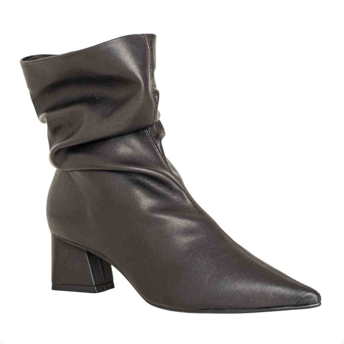 Confeccionada em napa stretch slim, material com leve flexibilidade que proporciona melhor adaptação ao pé e ao tornozelo. O acabamento liso na cor preta garante versatilidade e facilidade na composição de looks.