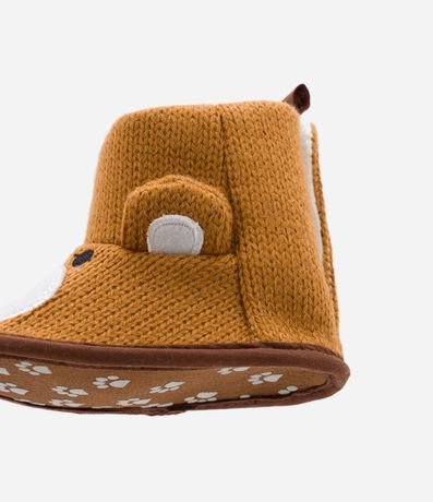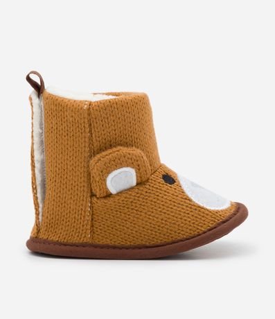 Ref: Botinha infantil com fechamento por velcro, apeluciadinha e com bordado ursinho, uma fofura!