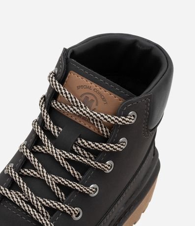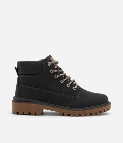 Ref: Bota infantil estilo coturno confeccionada em PU resistente, oferecendo estrutura e conforto para o dia a dia. Possui cano médio acolchoado, cadarço bicolor, costuras reforçadas e sola tratorada robusta, garantindo estabilidade e visual moderno para diversas combinações.