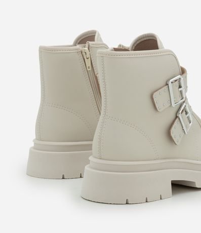 Ref: Bota infantil estilo coturno confeccionada em PU resistente, oferecendo estrutura e conforto para o dia a dia. Possui duas tiras com fivelas metálicas e aplicações de tachas, zíper lateral para facilitar o calce e sola tratorada que garante aderência e estabilidade.