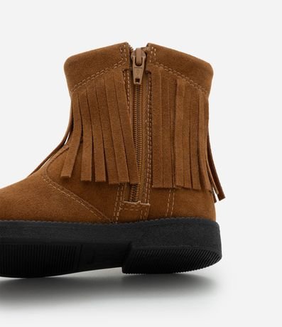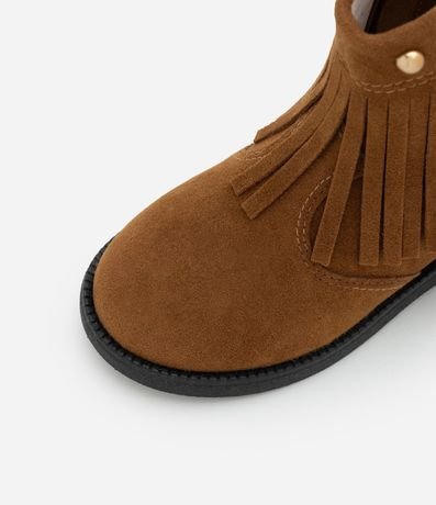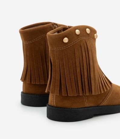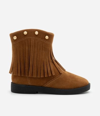 Ref: Bota infantil estilo western confeccionada em PU de toque macio, com visual moderno e confortável. Possui cano médio, franjas aplicadas com tachas decorativas, fechamento por zíper lateral e solado antiderrapante, garantindo praticidade e segurança para o dia a dia.
