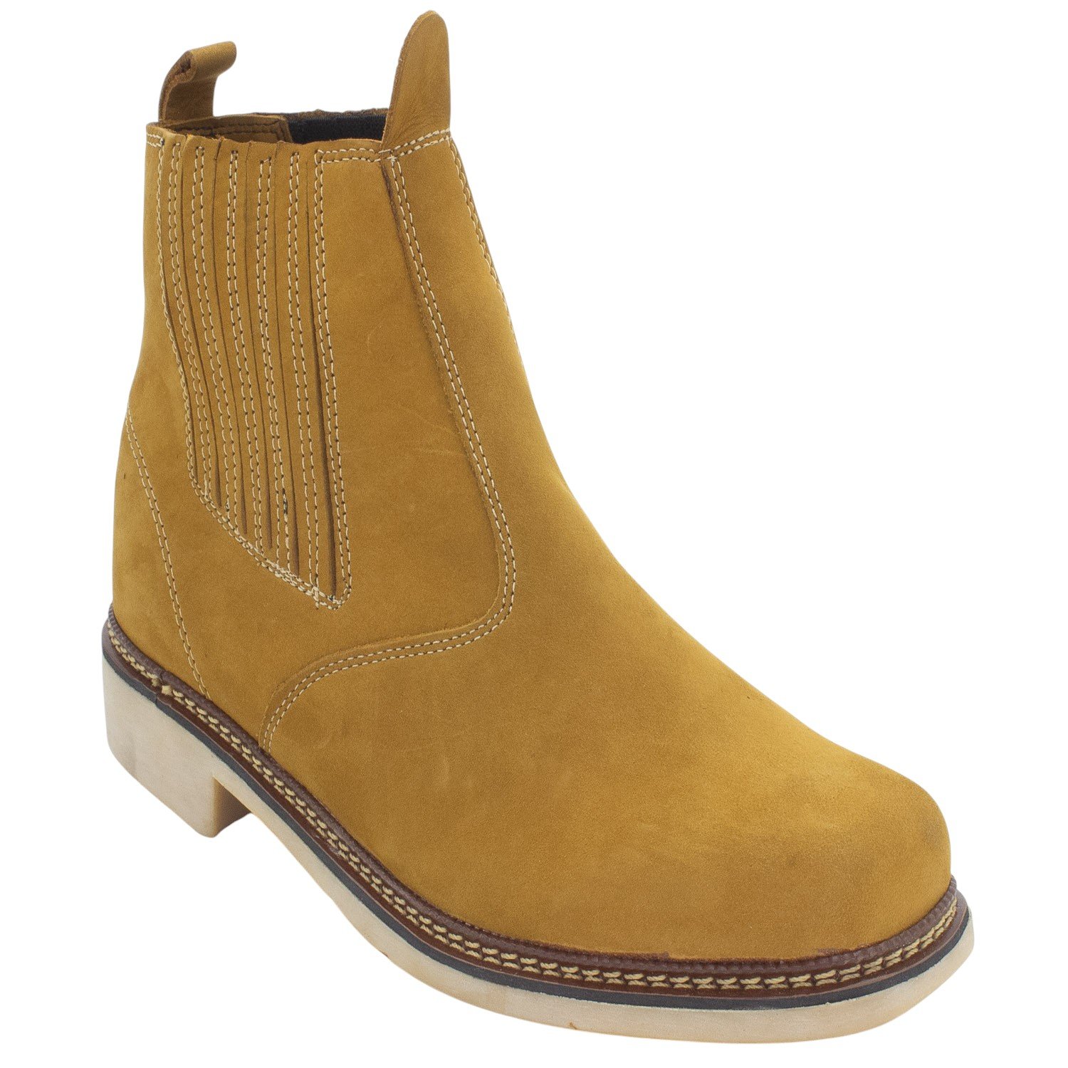 Esta é a Bota Masculina Diniz 0200, um calçado que alia a praticidade do design Chelsea à robustez de um estilo mais rústico. Confeccionada em um rico tom de Marrom Claro, a textura aveludada do material sintético, ela é a escolha ideal para o homem moderno que não abre mão de conforto e durabilidade. O design de cano médio é marcado pela ausência de cadarços e pela presença estratégica de elásticos nas laterais, o que garante um calce fácil e um ajuste perfeito ao tornozelo. Detalhes de costuras reforçadas em tom sutilmente contrastante, incluindo pespontos verticais sobre os elásticos, adicionam um toque artesanal e maior resistência à estrutura. O bico possui um formato levemente arredondado/quadrado, proporcionando conforto e um visual clássico. A qualidade do produto é assegurada pela construção, evidenciada pelo solado blaqueado (costurado), que une a parte superior à sola, garantindo maior longevidade ao calçado. O solado em material claro e robusto (como Borracha) possui um padrão de tração antiderrapante e um salto baixo, oferecendo excelente aderência e suporte para o uso diário. Esta bota Marrom Claro é uma peça essencial e versátil, capaz de transitar com elegância entre looks casuais, sociais descontraídos ou composições de estilo country.