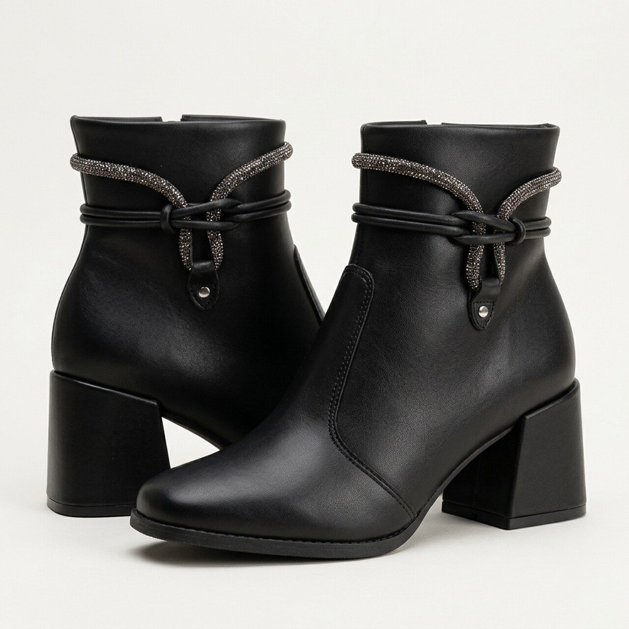 A Bota Moleca Salto Bloco Feminino 5352.102 é a escolha perfeita para quem ama um visual moderno com toque fashion e super confortável. Com salto médio de 7 cm, ela alonga a silhueta na medida certa sem abrir mão da estabilidade, enquanto os detalhes em strass trazem brilho sutil e cheio de estilo. O bico redondo e o material macio garantem conforto para usar o dia todo, e o zíper interno facilita o calce. Fica linda com jeans skinny, saias, vestidos ou peças de alfaiataria, ideal para trabalho, passeios e produções noturnas com personalidade.