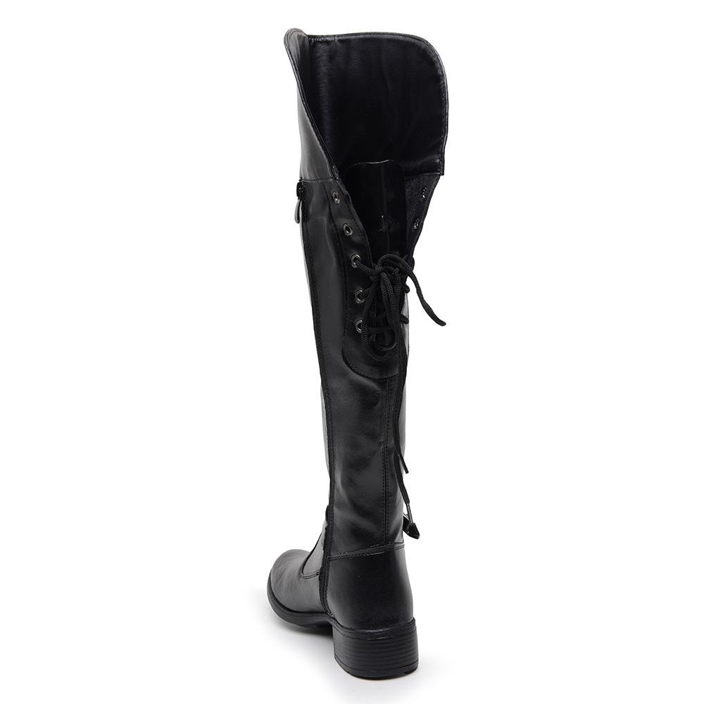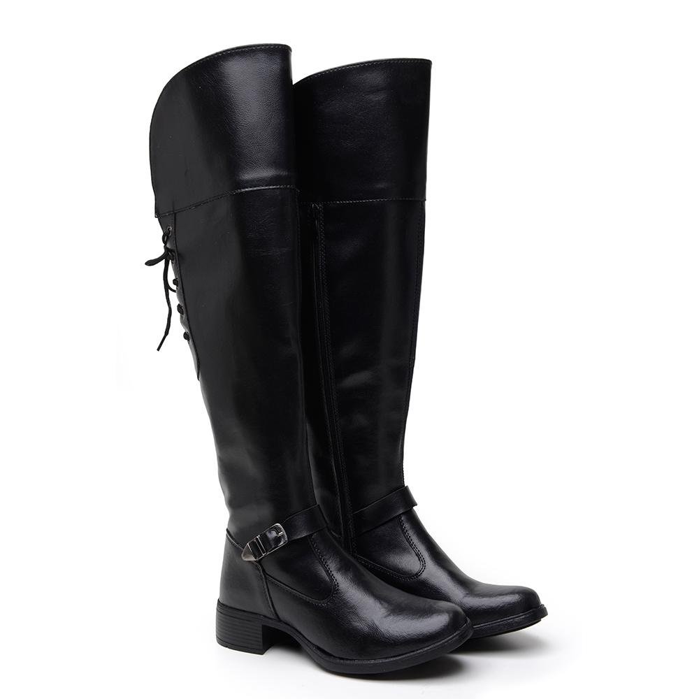 Esta bota over preta é o destaque absoluto para produções poderosas e cheias de estilo. Com cano acima do joelho, ela oferece um ajuste impecável que valoriza a silhueta, unindo sofisticação e conforto em uma única peça. Desenvolvida com material maleável e resistente, garante liberdade de movimento e um calce seguro para o dia todo. Seja combinada com vestidos, saias ou calças ajustadas, esta bota é a escolha definitiva para mulheres que buscam um visual marcante, moderno e extremamente versátil para as estações mais frias.