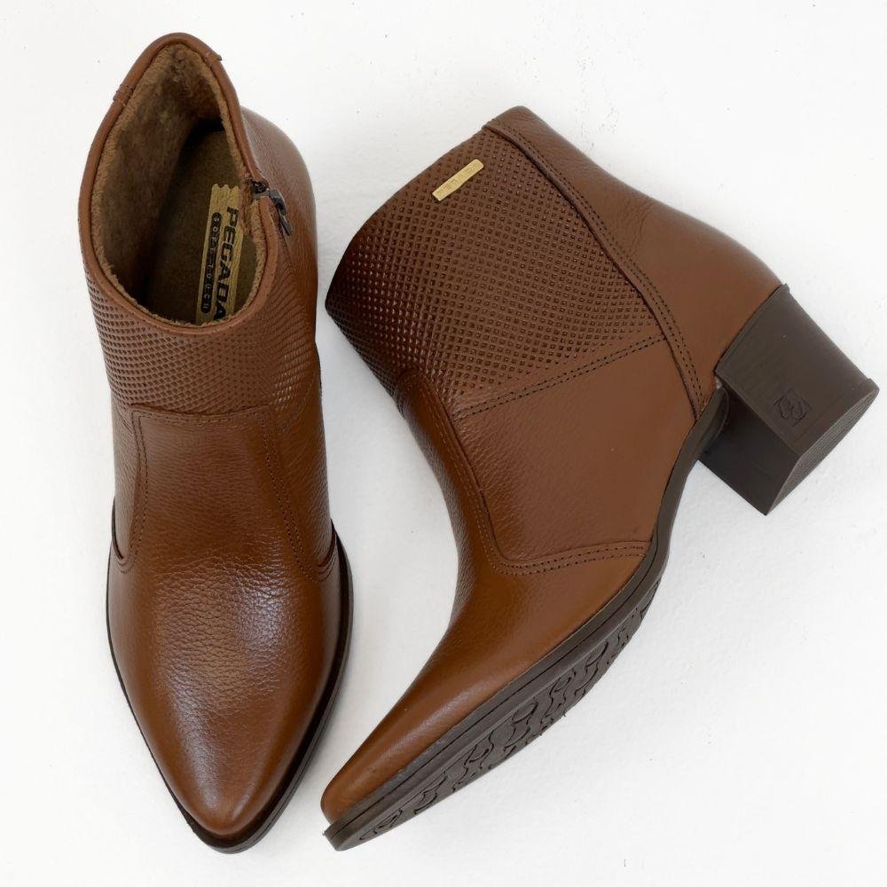 medidasBota Feminina Cano Curto Salto Bloco Médio Pegada