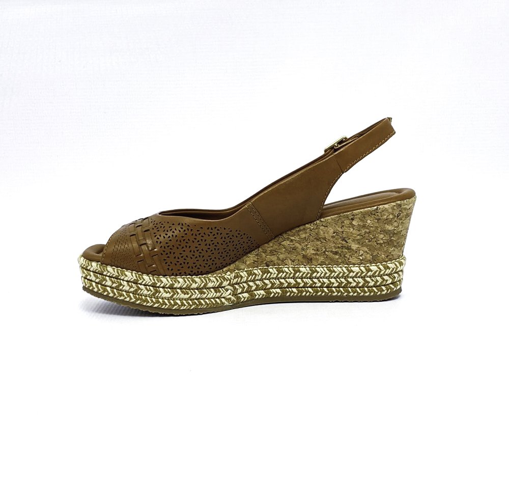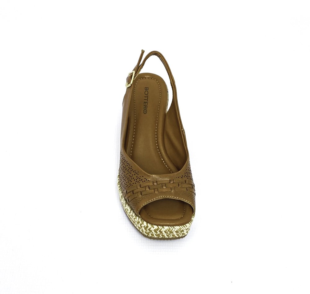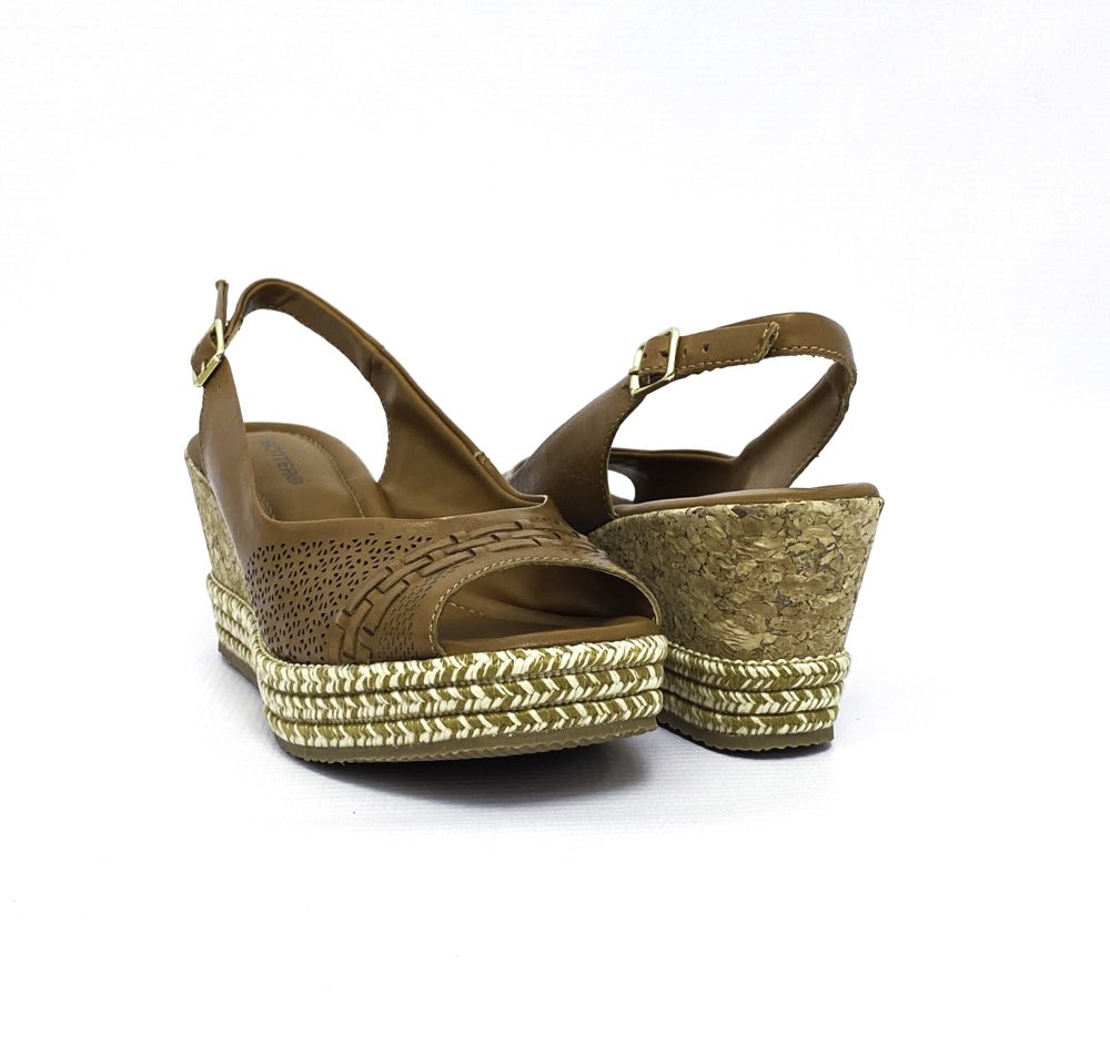 Ref: Sandália anabela em couro, acabamento entregando total conforto, qualidade e durabilidade. De salto anabela alto e bico arredondado, é muito leve e prático para o dia a dia. Conta com traseiro aberto com tira ajustável com fivela.