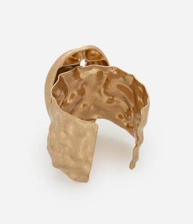 Ref: Bracelete feminino confeccionado em metal reciclado, peça no modelo rígido aberta com aplicação de búzio localizada.