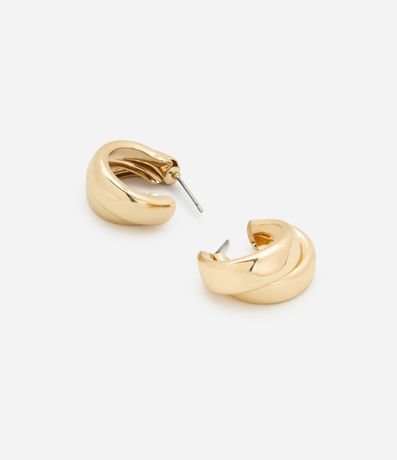Ref: Argola média em metal, dupla, com efeito achatado e fechamento por tarraxa.