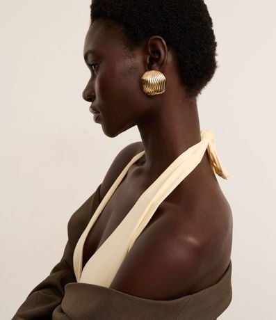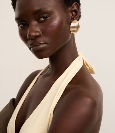Ref: Brinco botão feminino arredondado com textura de linhas.