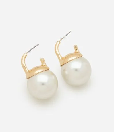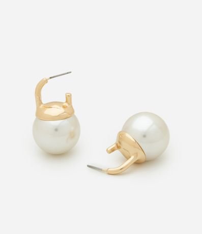 Ref: Brinco feminino estilo botão com pérola arredondada, presa a uma base metálica que envolve a parte superior da peça.