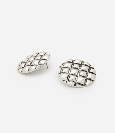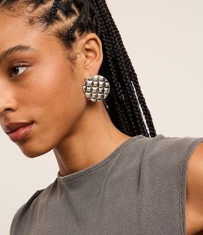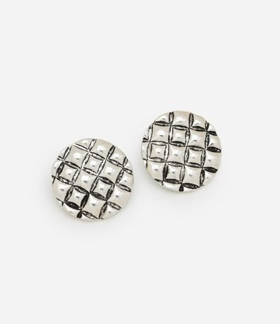 Brinco botão redondo com textura serpente e efeito envelhecido. Produto confeccionado em metal reciclado.