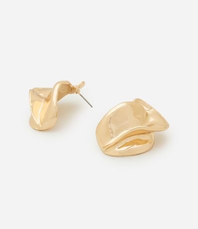 Brinco botão feminino em metal reciclado mais sustentável com formato orgânico dobrado.