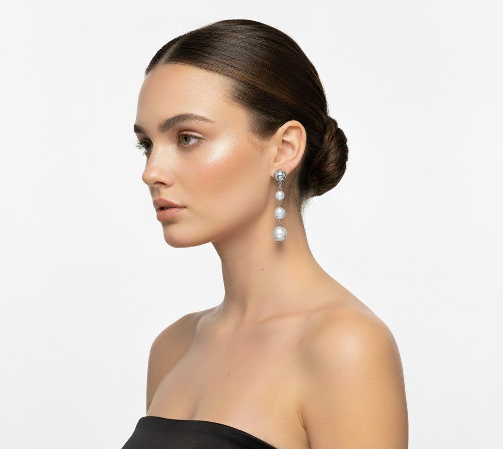 BRINCO CASCATA PEROLAS TRIO M BANHADO EM PRATA 925