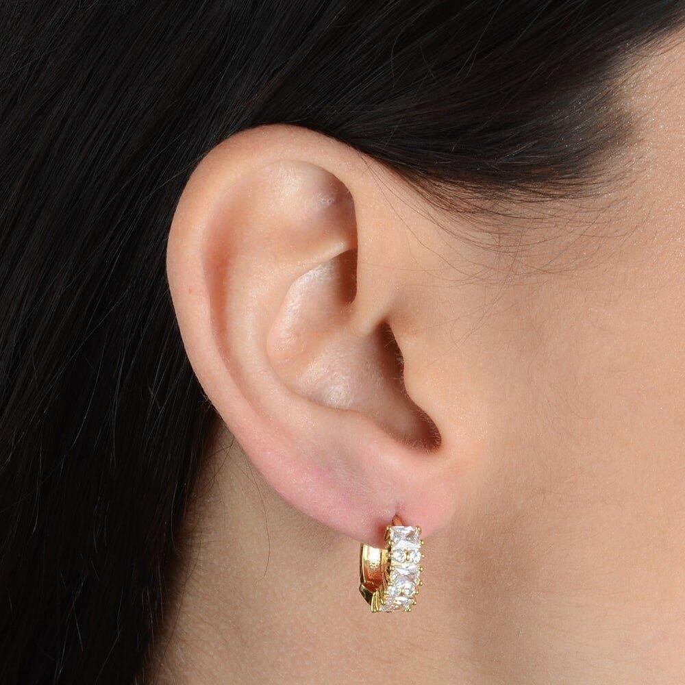 Brinco Dourado de Argolinha com 7 Pedras de Zircônia