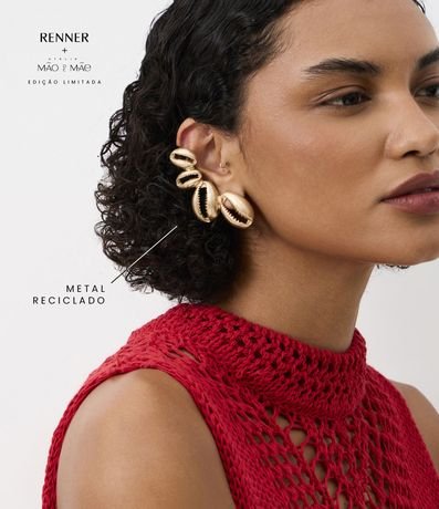 Brinco ear cuff assimétrico, confeccionado em metal reciclado, peça com elos de búzios. Esta peça faz parte da collab Ateliê Mão de Mãe.