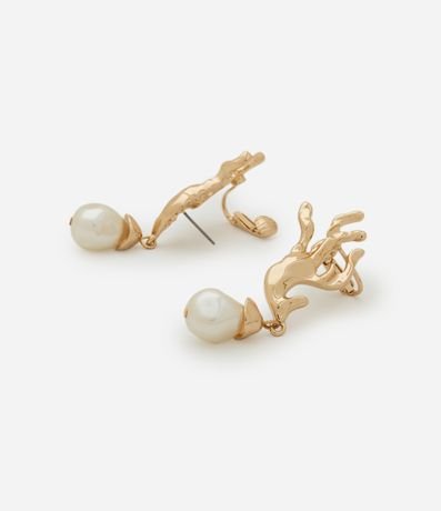 Ref: Brinco ear cuff com forma orgânica e pingente de pérola artificial.