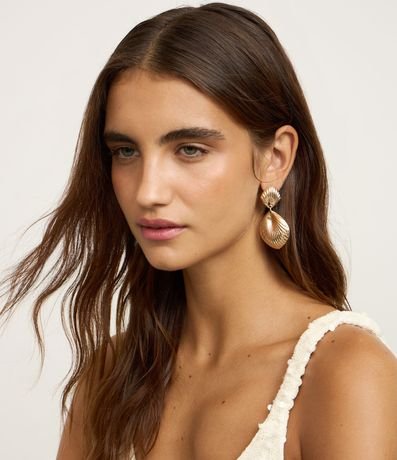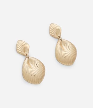 Ref: Brinco médio confeccionado em metal reciclado com banho ouro envelhecido e textura efeito concha. Design elegante e sofisticado, perfeito para compor looks modernos com toque artesanal e exclusivo.