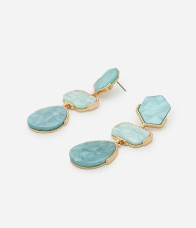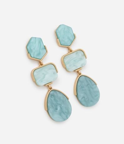 Brinco feminino médio com pingente de formas geométricas em resina. Produto confeccionado em metal reciclado