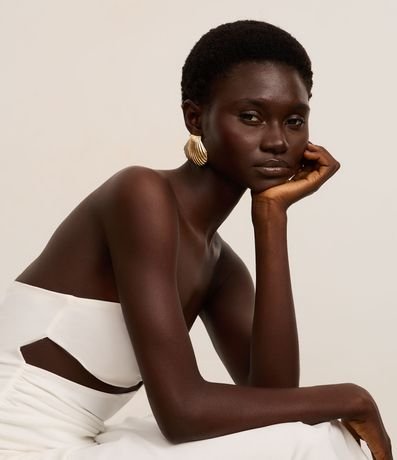 Ref: Brinco médio com forma de concha. Produto confeccionado em metal reciclado.