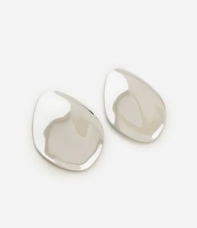 Brinco feminino médio chapa ovalado com efeito de onda.